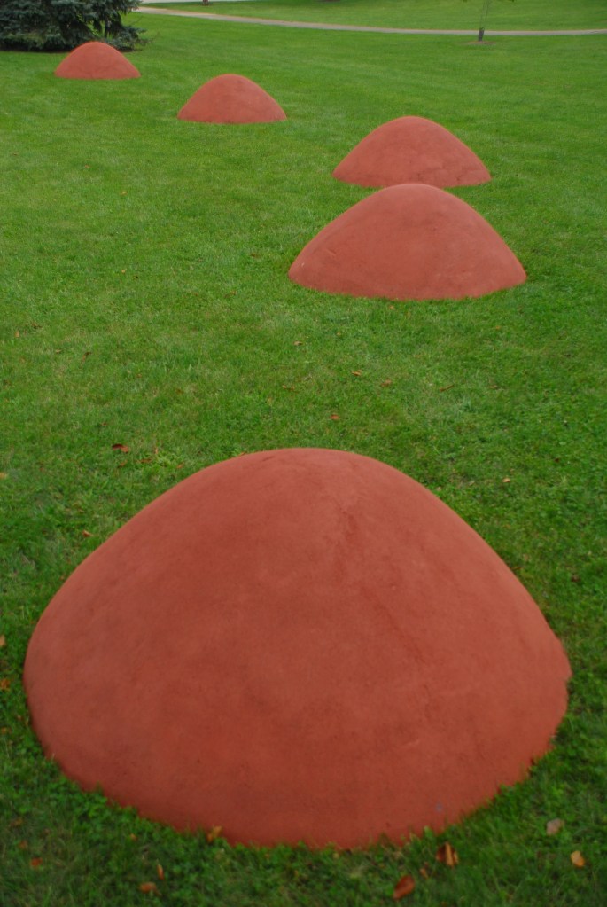 Visually, the forms are meant to resemble the reddish/brown color of the regions’ soil while the form itself is meant to signify a clear cut mountain top i.e. logging or landfill.