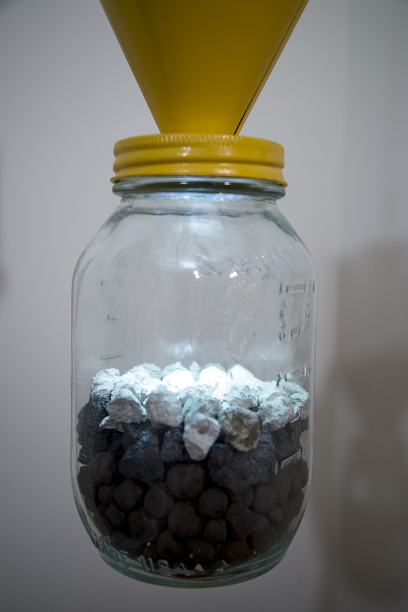 MATERIALS: found objects, solar lighting, plant/soil, and raw foundry materials